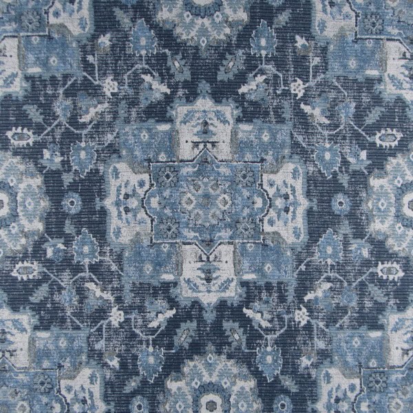 Amici Indigo Upholstery Fabric durable jacquard weave with navy blue Ikat design for furniture upholstery, pillows, cushions. On Sale!