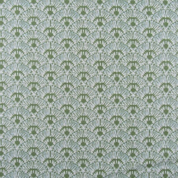 Lacefield Designs Whitby Meadow features a fan pattern with Asian-inspired flair in shades of green and aqua. Printed on high-quality, weighty cotton, this fabric is ideal for upholstery, drapery, pillows, and other decorative projects.