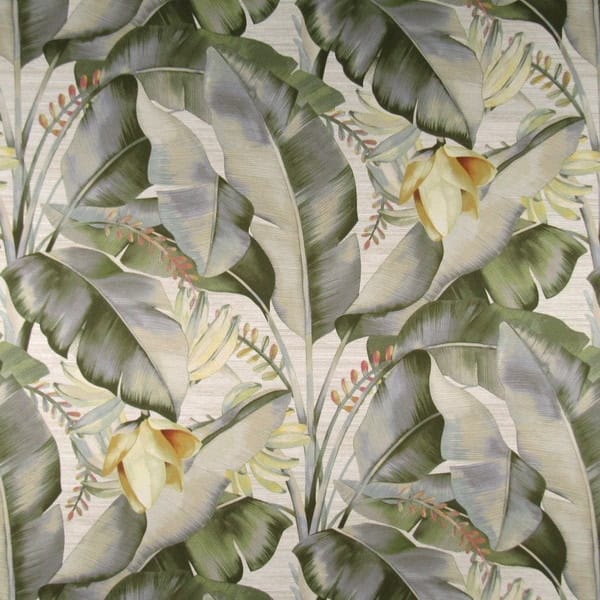 Tommy Bahama Among Fronds Meadow with tropical fern leaf design in subtle greens and golds. Printed on 100% cotton fabric for upholstery, drapery, pillows, cushions. Tommy Bahama Home Collection by P/K Lifestyles